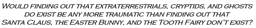 - The existence of cryptids like Bigfoot, British phantom cats, and Nessie.