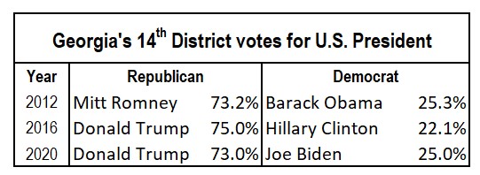 Given that the 14th District is so strongly Republican that no Democratic candidate would garner more than 25% of the votes on election day, it could be argued that the decision to send Marjorie Taylor Greene to Congress was made by the 44,000 voters who supported her in the primary and runoff elections. The moral of the story is: Don’t wait until election day to make your voice heard.