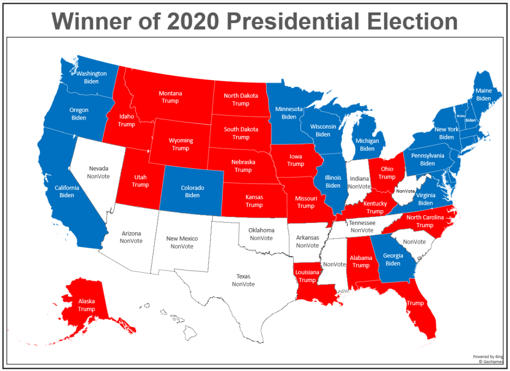 - 4 States went to Biden—AZ, HI, NV, and NM