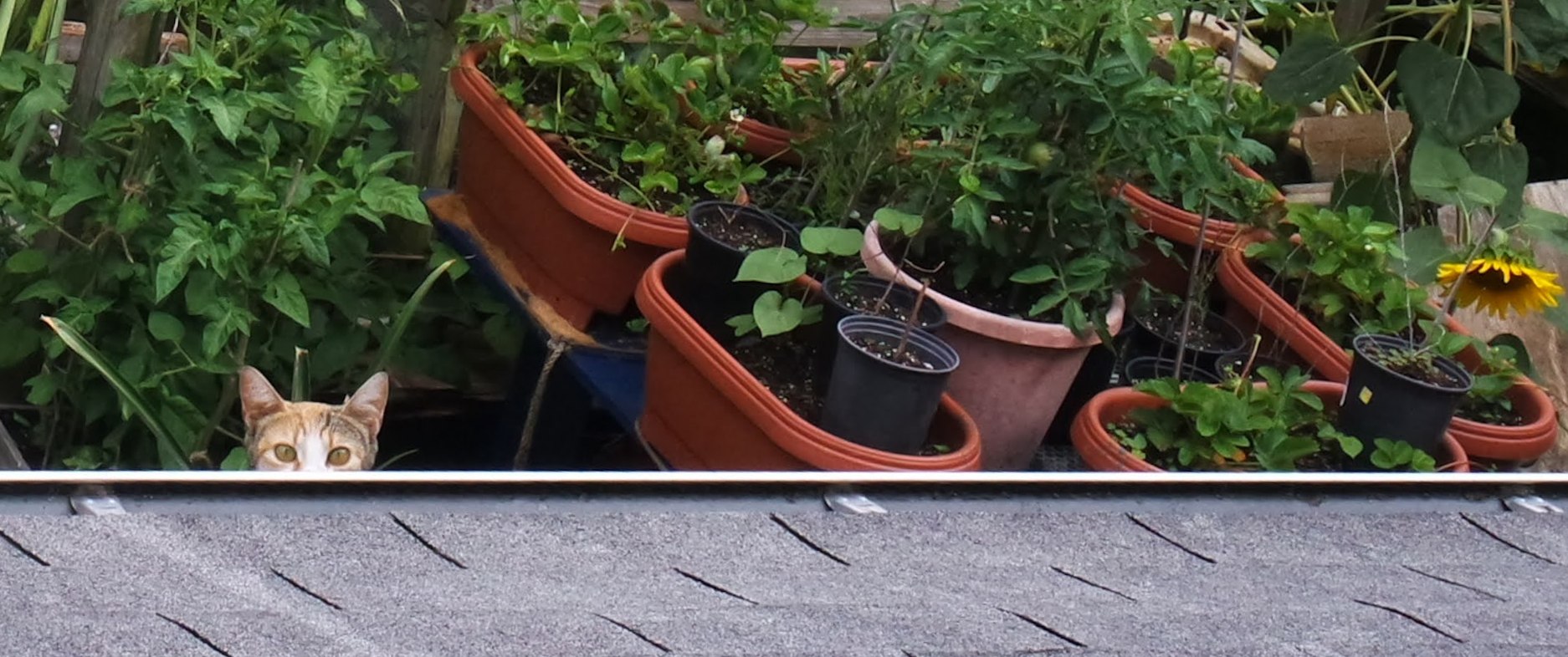 Cats are the animals you’re most likely to see when you visit my garden. I’ve had different colonies of cats visit me for decades. I’ve rescued two cats who still live with me. The current colony consists of five adults and three kittens. The cats take care of snakes and small rodents, which I haven’t seen in years. I also have a dozen fish, which the cats don’t bother. Occasionally, I’ll also see squirrels, racoons, chipmunks, rabbits, a fox, a ground hog, and a possum. I fed the birds for thirty years until 2021 when the health issues affecting songbirds required me to stop. I still have five bird houses, four bee houses, and a butterfly house.