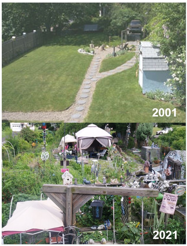 My garden started as a three-year project to fix the drainage on my new home. Then I started building raised beds and other garden structures. But I tend to over think and over plan, and collect too many things, so it kinda got outta hand. That was almost thirty years ago. Now my daughter does all the hard work. I’m retired.