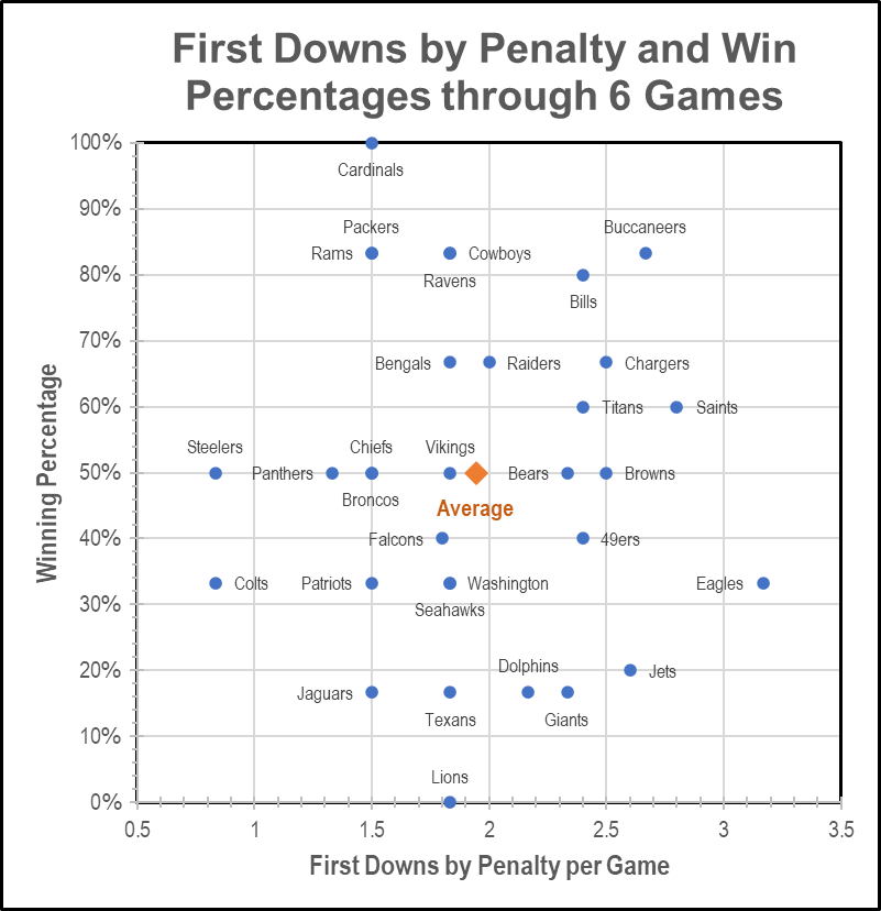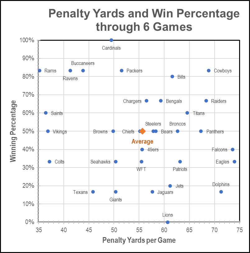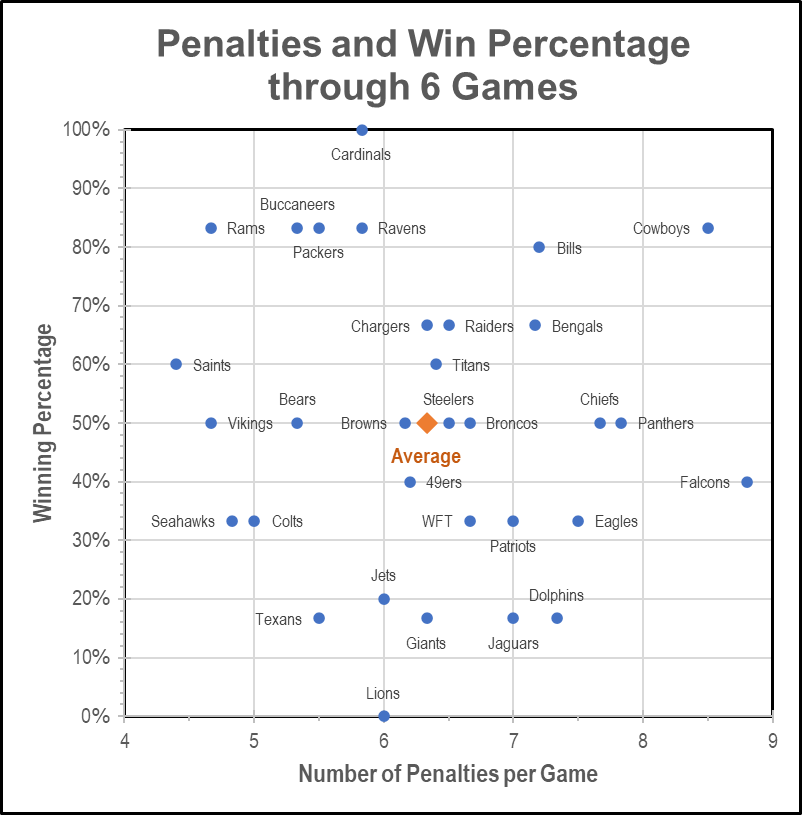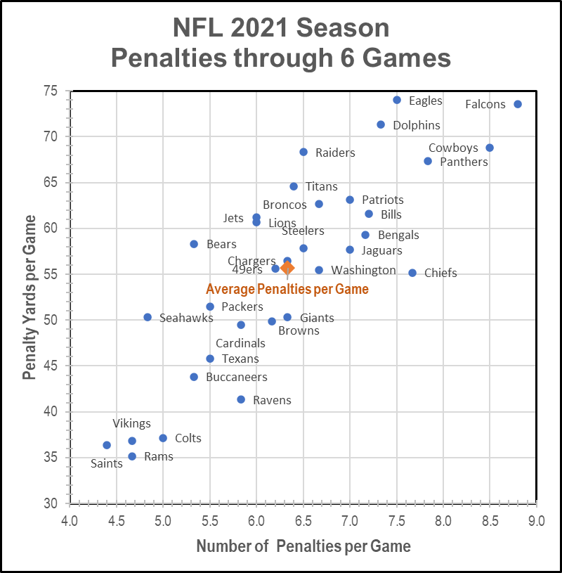 Sportscasters all maintain that avoiding penalties is critical to a team’s success. This is especially true in the National Football League where there seem to be examples in every game. A defensive penalty may give the offense a first down. An offensive penalty may kill a drive. Fans go apoplectic when referees call a penalty that negatively affects their team. But, do the penalties make a difference overall in the standings?